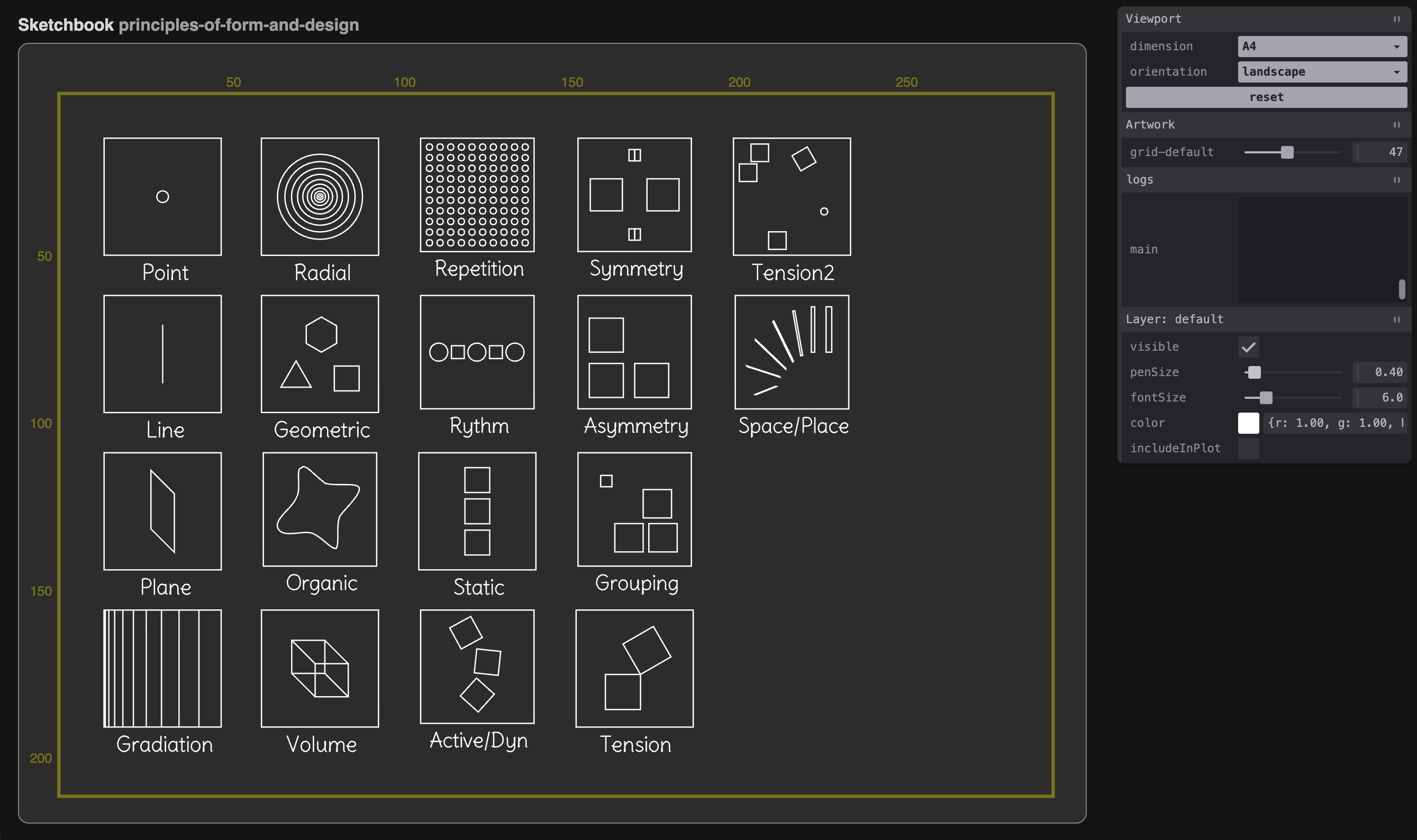 As time moved on and I got a bit more serious about using this library, I started to build up a sketchbook repository where all my experiments and sketches live, so I have a strong base toolset readily available and can start building with typescript, livereload, easy creation of controls, and more by basically just creating a new file.
